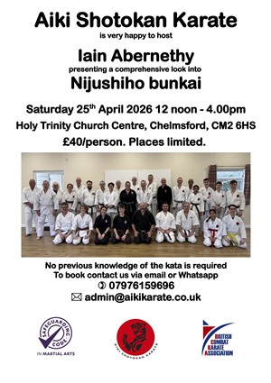 AIKI SHOTOKAN KARATE is happy to host IAIN ABERNETHY presenting a comprehensive look into NIJUSHIHO BUNKAI